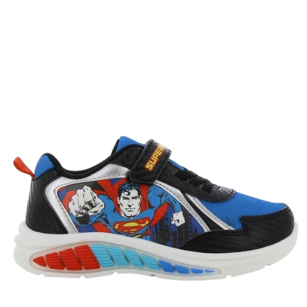 SUPERMAN Αθλητικό με φωτάκι Led και ρυθμιζόμενο αυτοκόλλητο για την καλύτερη εφαρμογή στο κάθε ποδαράκι. Με τεχνολογία Flex & Lightweight σόλα, αντιολισθητική και σταθερή για μεγαλύτερη ασφάλεια. Ανατομικός και αντιβακτηριδιακός πάτος για την σημαντική υγιεινή του ποδιού. Εσωτερικό υλικό ύφασμα για να αναπνέει το ποδαράκι.